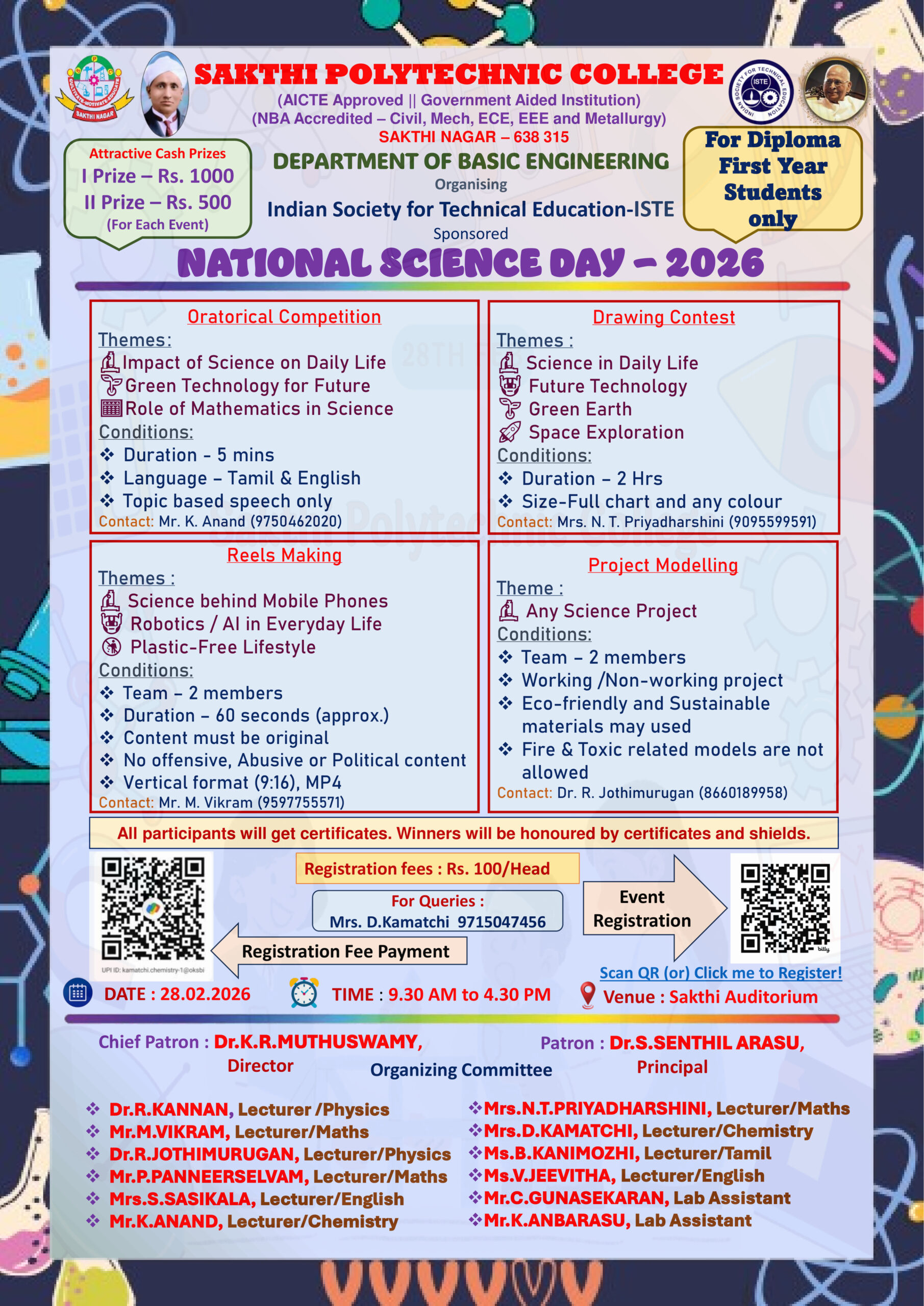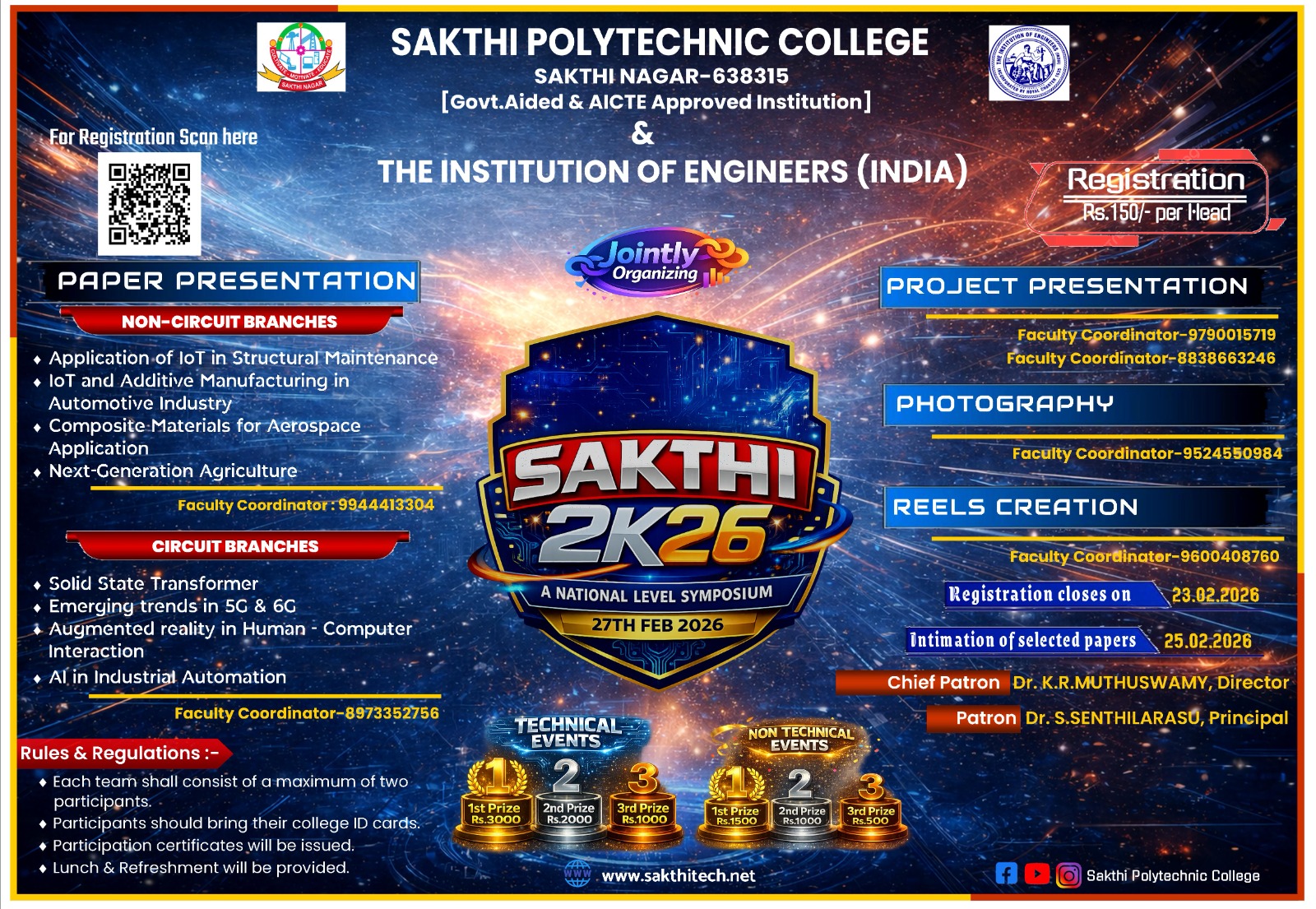 NBA Accredited : Civil, ECE, Mech, Met & EEE Programmes & A Unit of Sakthi Foundation | Established : 1981